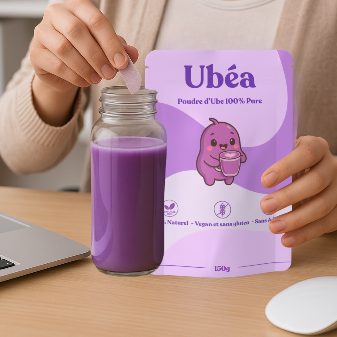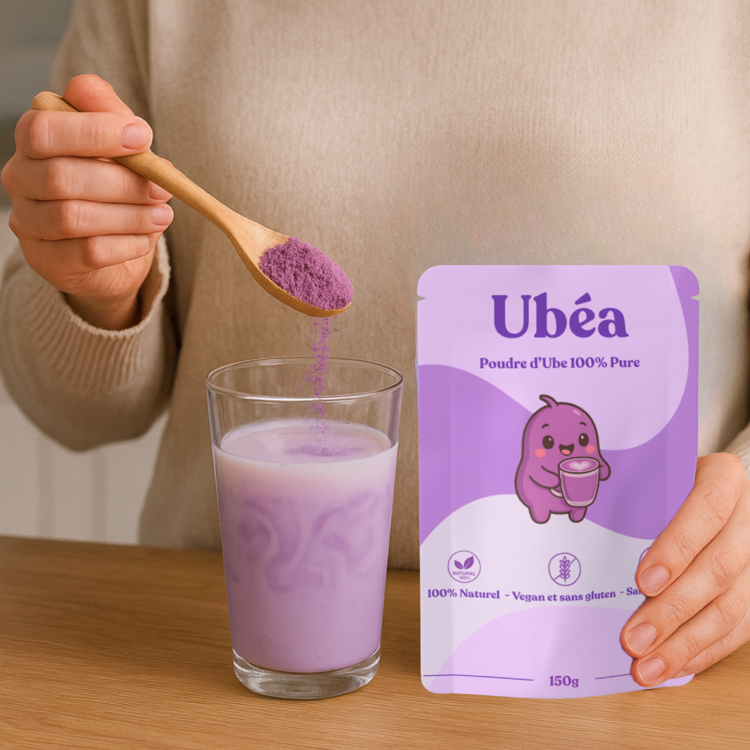 Ubéa est composée à 100 % de poudre d’Ube pure, sans sucre ajouté, sans additifs et sans caféine.